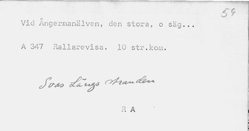 //// 5 9 //// O //// Vid Angermanälven, den stora, o säg... A 347 Rallarevisa. 10 str.kom. //// R A //// I //// = ////