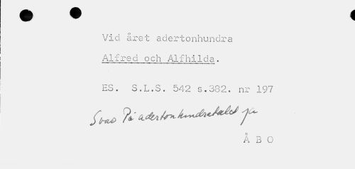 //// Vid året adertonhundra Alfred och Alfhilda. //// ES. S.L.S. 542 s.382. nr 197 //// k B O ////
