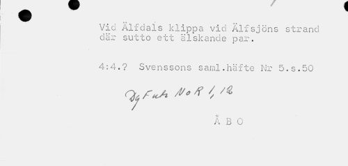 //// Vid Alfdals klippa vid Alfsjöns strand där sutto ett älskande par. //// 4:4.? Svenssons saml.häfte Nr 5.S.5Q //// o //// A C\ //// t\ £) U ////