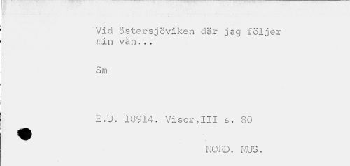 //// Vid östersjöviken där jag följer min vän... //// Sm //// E.U. 18914. Visor,III s. 80 //// NORD. MUS. ////