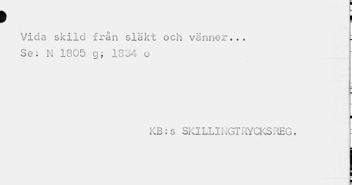//// > j; //// Vida skild från släkt och vänner... : //// Se: N 1805 g; 1834 o //// I //// KB:s SKILLINGTRYCKS REG. : ////