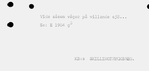 //// Vida såsom vågor på villande sjö... //// f v //// 9 Se: E 1904 //// KB:s SKILLINGTRYCKSREG. ////