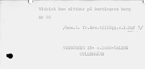 //// Vidrick han sitther på bortingens borg Nr 80 //// /Arw. 3? Tr* Arvv. tillägg, d.I .DgF 7/ //// ' — « //// VISBÖCKER 15- o.1600-TALENS ^ GYLLENMÄRS ////