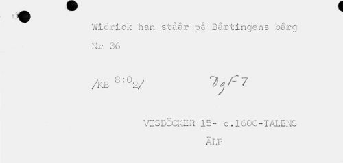 //// Widrick han ståår på Bårtingens bårg Nr 36 //// /KB 0:02/ //// VISBÖCKER 15- o.1600-TALENS //// e ft //// ALF ////