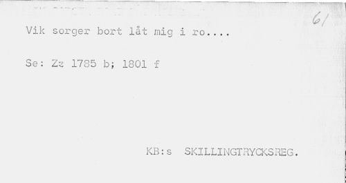 //// • « - • , //// G/ //// Vik sorger bort låt mia i ro... Se: Zy 1785 b; 1801 f //// KB : s SKl L LI NGT RYCKS REG. ////