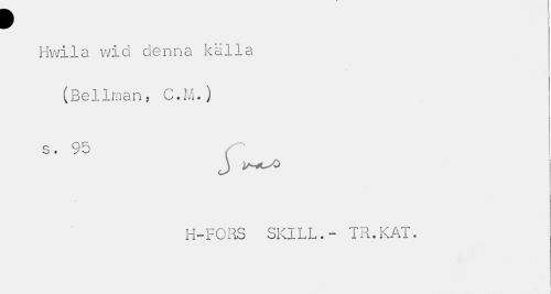 //// p //// Hwila wid denna källa //// (Bellman, C.M.) //// s. 95 , //// J //// H-FORS SKILL.- TR.KAT. ////