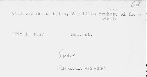 //// — +* ... •w . - ; « > //// % % //// Vila vid denna källa, Vår lilla frukost vi fram- B //// 1 'i //// S C cx ± X a s //// Haft i. s.27 Mel.not. //// DEN GAMLA VISBOKEN ; //// ¦ //// : ////