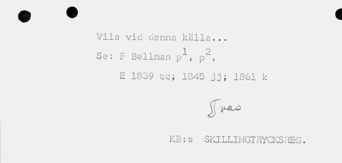 //// Vila vid denna källa... //// 1 2 //// Se: F Bellman p , p , //// E 1839 se; 1845 jj; 1861 k ' //// (j iA^U) //// KB:s SKILLINGTRYCKS REG. ////