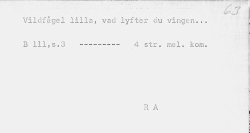 //// Vildfågel lilla, vad' lyfter du vingen... //// : //// B 111,s.3 ---4 str. mel. kom. //// * //// P A //// 11 J-i ////