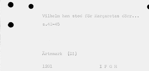 //// Vilhelm han stod för Margaretas dörr... //// • q 4 - 4 s //// O • T O I S-/ //// Ärtemark (Dl) //// 1201 I F G H ////