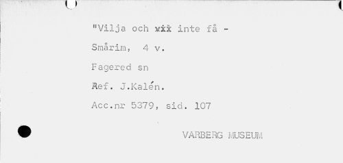 //// "Vilja och arii inte få - //// Smårim, 4 v. //// Fagered sn //// Äef. J.Kålen• //// Acc.nr 5379, sid. 107 //// 9 VARBERG MUSEUM ////