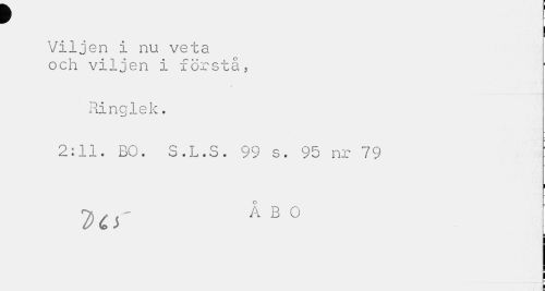 //// f //// I //// Viljen i nu veta och viljen i förstå, //// Ringlek. //// 2:11. BO. S.L.S. 99 s. 95 nr 79 //// i //// Der ÅB0 //// i ////