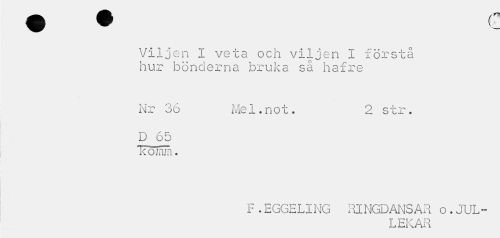 //// Viljen 1 veta och viljen I förstå hur bönderna bruka så hafre //// Nr 36 Me 1.not. 2 str. //// D 65 //// Icomxh. //// F.EGGELING RINGDANSAR o.JULLEKAR ////