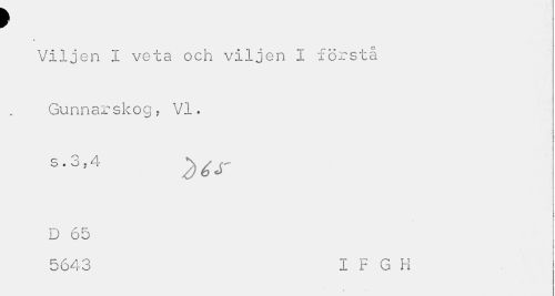 //// t //// Viljen I veta och viljen i förstå Gu nn ars ko g , VI. //// s //// D 65 //// 5643 I F G H //// i- ////
