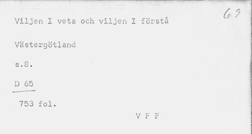 //// '... - 0 6>f : //// Viljen I veta och viljen i första //// Västergötland //// o O //// s • o * //// D 65 753 fol. //// V F F ////