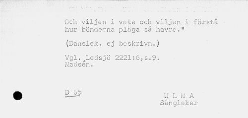 //// r* -T * . ... r . _ . ___. ... //// f * f " ¦» //// «• 4 t . * •• ''•> •• . s ... K «• . i,.. . ...• . //// Och viljen i veta och viljen i förstå • hur bönderna pläga så havre." //// (Danslek, ej beskrivn.) //// Vgl. ^Ledsjö 2221:6,s.9. Ma dsén. //// Sånglekar ////