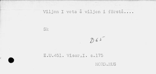 //// Viljen I veta å viljen i förstå... S iC //// . D<>1' //// E.U.451. Visor,1. s.175 //// MORD.MUS ////