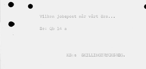 //// Vilken jobspost når vårt öra... //// ^^ Se: Q b 14 a //// * //// KB:s SKILLINGT RYCKSREG. ////