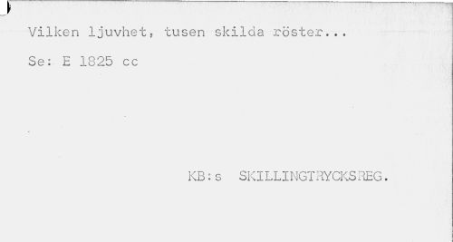 //// w //// Vilken ljuvhets tusen skilda röster... Se:- E 1825 cc //// KB:s SKILLINGTHYCKSREG. ////
