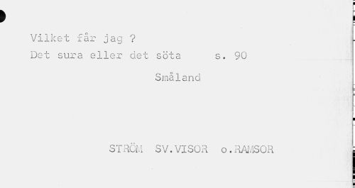 //// > ; //// Vilket får jag ? //// Det sura eller det söta s. 90 //// Småland //// i //// STRÖM SV.VISOR o.RAMSOR ; //// | ////