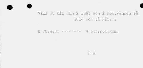 //// Vill du bli min i lust och i nöd,vännen så //// huld och så kär... //// B 785s.33 --- 4 str.not.kom. //// R A ////