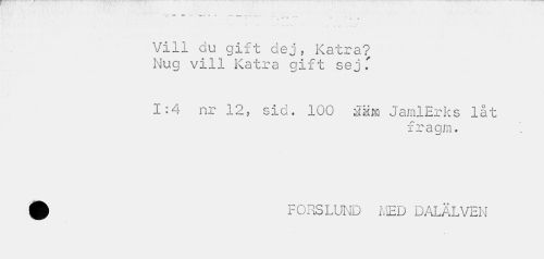 //// 1 , r' * " rv //// ... i //// Vill du gift dej, Katra? Nug vill Katra gift sej T //// 1:4 nr 12, sid. 100 åä» JamlErks låt //// fraqm. //// 0 FORSLUND MED DALÄLVEN //// 0 * ////