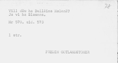 //// f' 4 ~ " * -w , — t - -t //// if //// Vill däu ha Bulläins Malena? Ja vi ha Slauens, //// Nr 570, sid. 573 1 str. //// FREDIN GOTLANDSTONER , //// I //// i ////