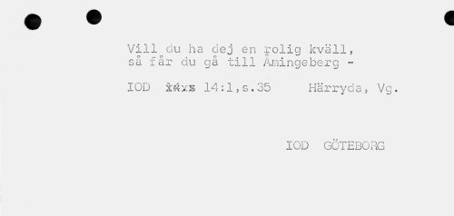 //// Vill du ha dej en rolig kväll, så får du gå till Amingeherg - //// IOD M-xs 14:1, s. 35 Härryda, Vg. //// IOD GÖTEBORG ////
