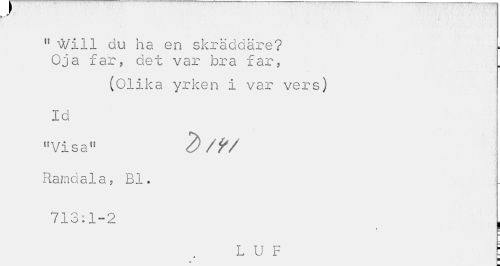 //// 11 \Vill ou ha en skräddare? Oj a far, det var bra far, //// (Olika yrken i var vers) //// Id "Visa11 //// Ramaala, Bl. //// 713:1-2 , //// • __ //// Ii t ; ////