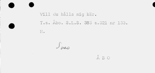 //// Vill du hålla mig kär. //// o //// ^^ I.s. Abo. S.L.S. 383 s.321 nr 133. //// Tv T //// IK * //// r //// IMUO //// ÅBO ////