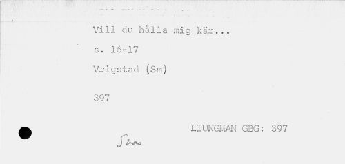 //// —yr T"*"-** ~ - - - - - //// ? * • , »» //// •4 j, .. j . • . w //// Vill du hålla mig kär... s. 16-17 Vrigstad (Sm) //// 397 //// a LIUNGMAN GBG: 397 //// J l^c ////