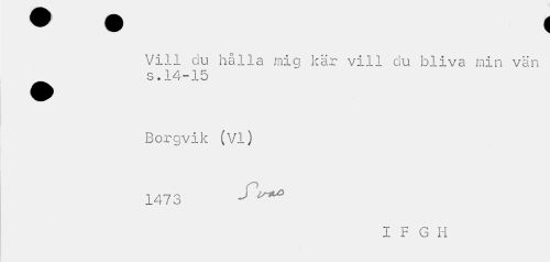 //// Vill du hålla mig kär vill du bliva min vän s.14-15 //// Borgvik (Vi) //// 1473 ^ //// I F G H ////