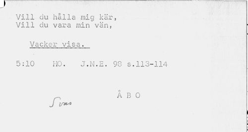 //// Vill du hålla mig kär, Vill //// q u v a -c 3. mi n v a n s r //// i //// Vacker visa. 5:10 HO. J.N.E. 93 s.113-114 //// Å B 0 //// J m** //// ¦ ////