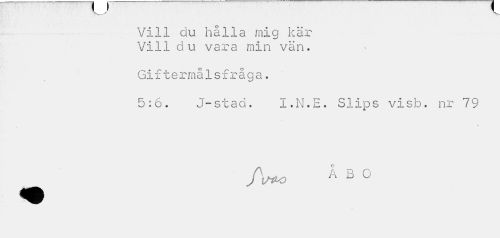 //// v //// Vill du hålla mig kär Vill du vara min vän. //// Giftermålsfråga. //// 5:6. J-stad. I.N.E. Slips visb. nr 79 //// /Wo A B O ////
