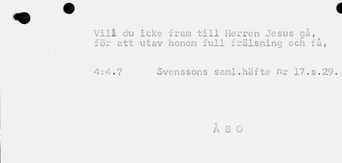 //// Vilå clu icke fram till Herren Jesus gå, för att utav honom full frälsning och få, //// 4:4.? Svenssons saml.häfte nr 17.S.29. //// Å B O ////