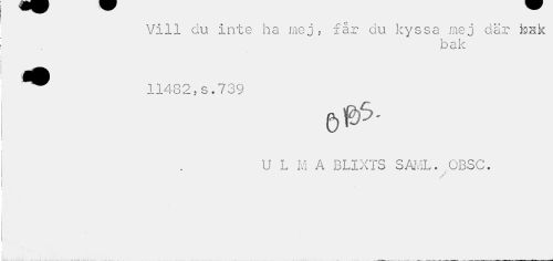 //// Vill du inte ha mej, får du kyssa mej där tesk //// bak //// . H ¦ //// 11482,. s.739 //// U L M A BLIXTS SAML. OBSC. //// / jr ////