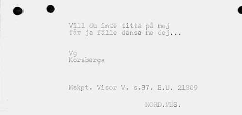 //// Vill du inte titta på mej får ja fälle dansa me dej... //// Vg //// Korsberga //// Mskpt. Visor V. s.87. E.U. 21809 //// NORD. MUS. ////
