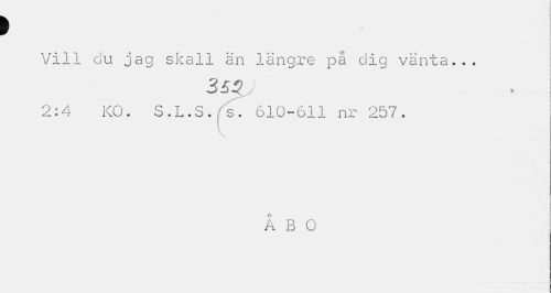 //// ) //// Vill du jag skall än längre på dig vänta... //// 353J //// 2:4 KO. S.L.S. s. 610-611 nr 257. //// ÅBO ////