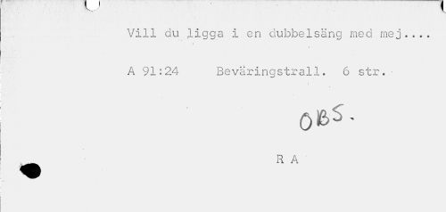 //// ¦ • K //// Vill du ligga i en dubbelsäng med mej... //// é //// t //// A 91:24 Beväringstrall. 6 str.• //// i' //// __ RA" ////