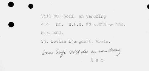 //// Vill du, Sofi, en vandring ^ 4:4 Kl. S.L.S. 82 s.313 nr 154. //// T- f A /*"\ O //// N.s. 403. //// Sj. Lovisa Ljungdell, Vreta. //// i^o Wt U^ ^ //// ÅBO ////