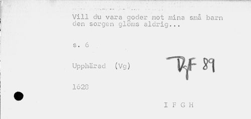 //// '-,' ¦''"»' ' ' ' . • . - . 5 ' , //// ... //// * " I'"" " . . " . - ' * - / ' - » W »' v - V - ,r //// Vill du vara göder mot mina små barn den sorgen glöms aldrig... //// s. 6 1628 //// 1 F G H ////