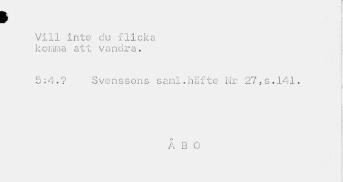 //// I //// Vill inte du flicka komma att vandra. //// 5:4.? Svenssons saml.häfte Nr 27,s.141. //// i //// A B O ////