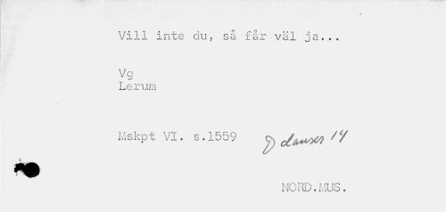//// Vill inte du, så får väl ja... Vg //// Lerum //// Mskpt VI. s . 1559 p cifr*4^ ^ //// NORD.MUS. ////