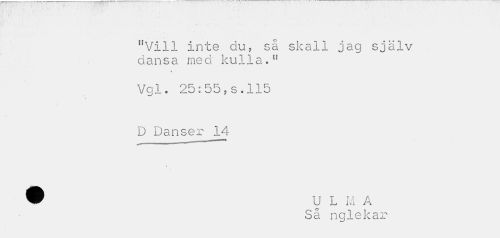 //// "Vill inte du. så skall jag själv //// dansa mecl kulla." //// • •* //// Vgl. 25:55,s.115 //// 7 //// D Danser 14 //// Så nglekar ////