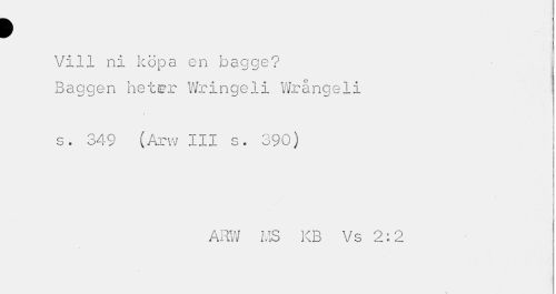//// > //// Vill ni köpa en bagge? //// 1 //// Baggen heter Wringeli Wrångeli s. 349 (Arvv III s. 390) //// ARV/ IviS KB V s 2«'2. ////
