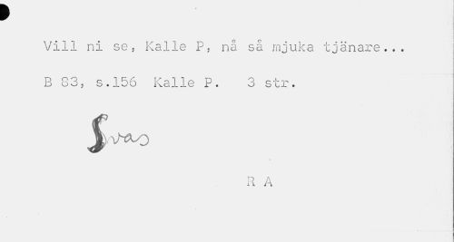 //// f //// Vill ni se5 Kalle P, nå så mjuka tjänare... B 83, s.156 Kalle P. 3 str. //// q a 11 M ////