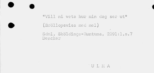 //// flVIll ni veta hur min dag ser utn ^^ (Bröllopsvisa med mel) //// v //// Sdml, Slcöldinge-Runtuna; 2391:1, s. 7 Deneker //// ' U L M A ////