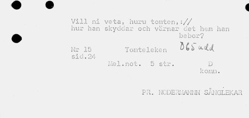 //// Vi11 ni ve t a 5 huru tomten,:// hur han skyddar och värnar det hem han ^^ bebor? //// Nr 15 Tomteleken ^^ //// S J- Ö « cLJ" r //// Me 1. n o t. 5 s t r. D //// k o mm. //// PR. NODERMANNN SÅNGLEKAR ////