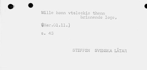 //// Wille honn vtsleckie thenn //// brinnende loqe, //// ljlHar.01.il.) s. 43 //// STEFFEN SVENSKA LÅTAR ////