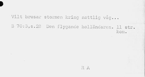 //// p //// Vilt brusar stormen kring nattlig våq... //// B 70:3,s.28 Den flygande holländaren. 11 str. //// kom. //// R A ////